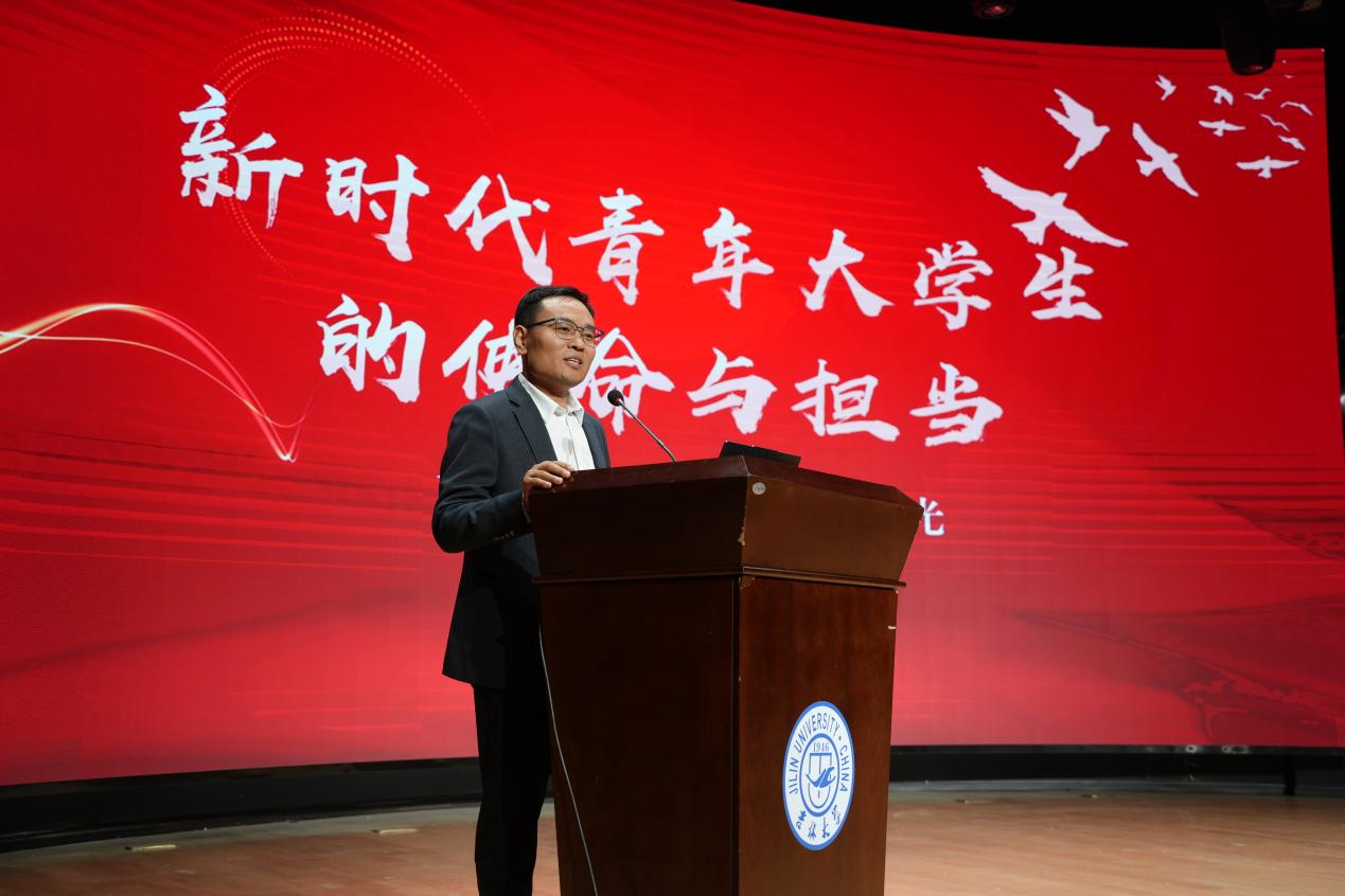 孙曙光以《新时代青年大学生的使命与担当》为题,立足“百年未有之大变局”的时代背景,以“中国共产党与中国青年”的深刻关联为切入点,通过张伯苓校长“你是中国人吗?你爱中国吗?你愿意中国好吗?”的经典“爱国三问”,为新生搭建起从历史纵深到现实关怀、从国家命运到个人成长的使命认知框架。