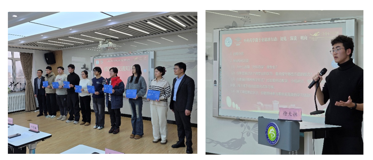药学院本科生徐大恒在发言中表示,参与微专业学习有助于拓展临床药学知识体系,开阔跨学科视野,为未来职业发展奠定坚实基础。仪式上,药学院院长项金宝、副院长兼微专业行政负责人徐华丽、微专业负责人宋燕青先后致辞,围绕学科交叉融合、药学教育创新、临床服务需求等方面,阐释并肯定了微专业建设的重要意义。药学院党委书记孙曙光在总结中寄语全体学员,希望大家保持“求知若渴”的态度、践行“知行合一”的精神、拓展“跨界融合”的视野,努力成为“懂外科、精药学、善沟通”的高素质人才。教学团队表示,课程将围绕临床真实问题展开,打破学科界限,培养学生具备临床药师的精准用药能力与外科医生的系统诊疗思维。仪式中,新一届学员郑重接收录取通知书,并参与由雷天资老师组织的交流活动。